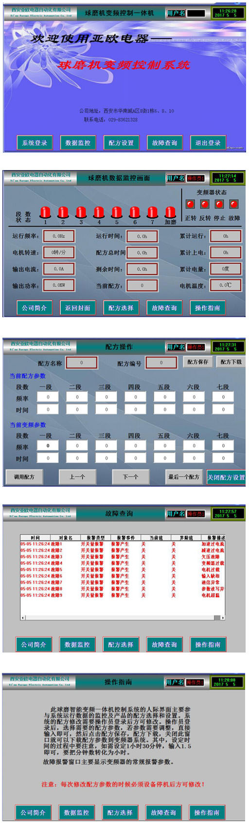 3.主輔機(jī)一體化設(shè)計(jì),安裝調(diào)試方便,顯示屏和儀表能實(shí)時(shí)監(jiān)控球磨機(jī)變頻器的相關(guān)電氣參數(shù),方便用戶(hù)調(diào)試和監(jiān)控。