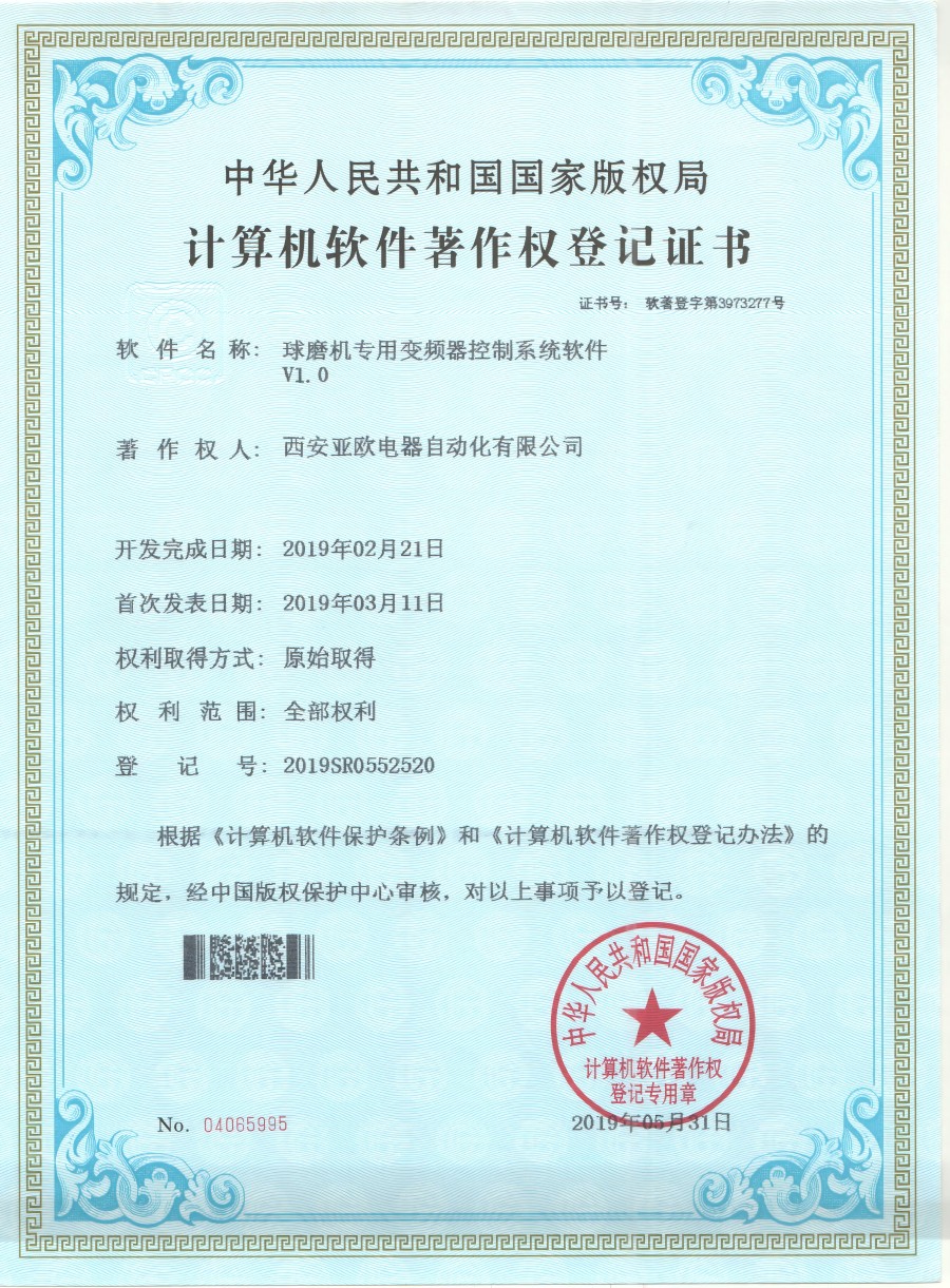- 關(guān)于我們 - 資質(zhì)榮譽 - 球磨機專用變頻器軟件著作